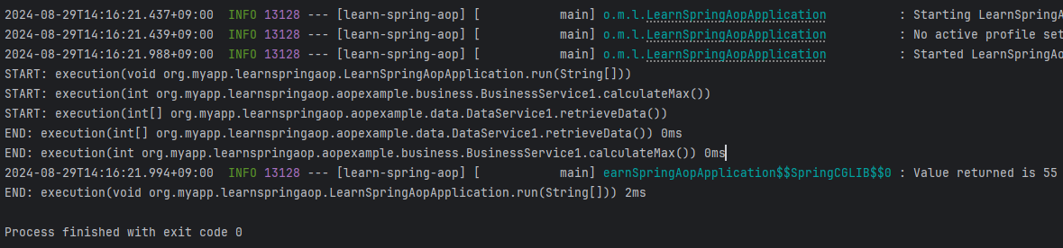 System.out.println("END: " + joinPoint.toString() + " " + timeMs + "ms");