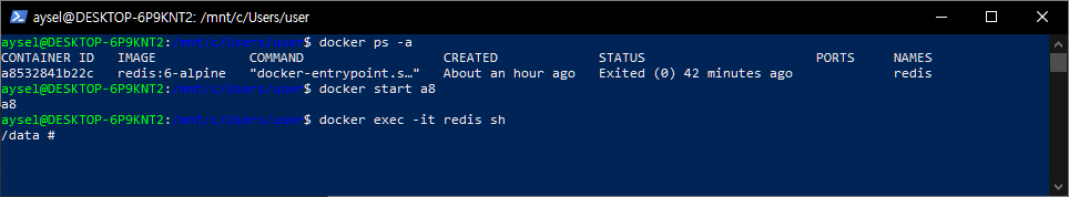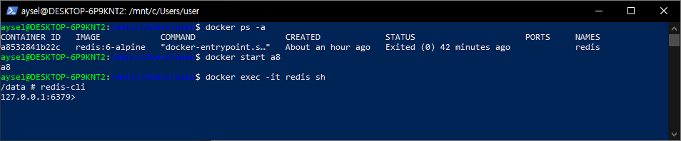 // redis로 해서 접근이 되는 이유 : -name redis로 해놓았기에 해당 docker의 이름이다.