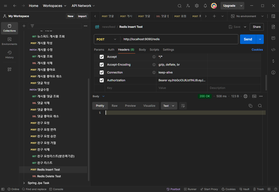 - ValueSerializer: Redis에서 사용하는 값을 문자열로 직렬화하기 위한 StringRedisSerializer로 설정합니다.