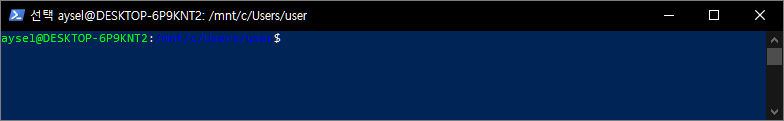 ubuntu가 실행되면 해당 os의 명을 어떻게 할지 비밀번호도 설정하라는 안내가 뜨는데 설정하면 이와 같이 나온다.